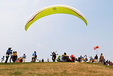 10:30ゲートオープン、11:15スタートで選手はテイクオフを開始しました。 しかし、ゲートオープンから30分ほどたった頃、さらに風が強まってきたため今 日のタスクはキャンセルとなりました。