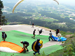 大会初日は朝から快晴、誰の目にも明らかにコンディションが良くなりそうです。朝早い時間の受付にもかかわらず、30分でほとんどの受付が終了しました。受付を済ませた選手から順次テイクオフへ移動を開始、9時30分ごろには全員テイクオフにそろい、開会式へ。開会式にはNHK宇都宮放送局の取材も入り、雰囲気も盛り上がってきました。そして10時にはタスクブリーフィング。
